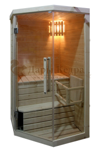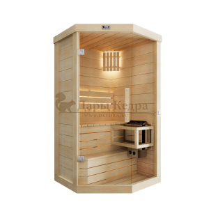 Одноместная угловая финская «Элит» сауна кабина из кедра и липы с электрокаменкой